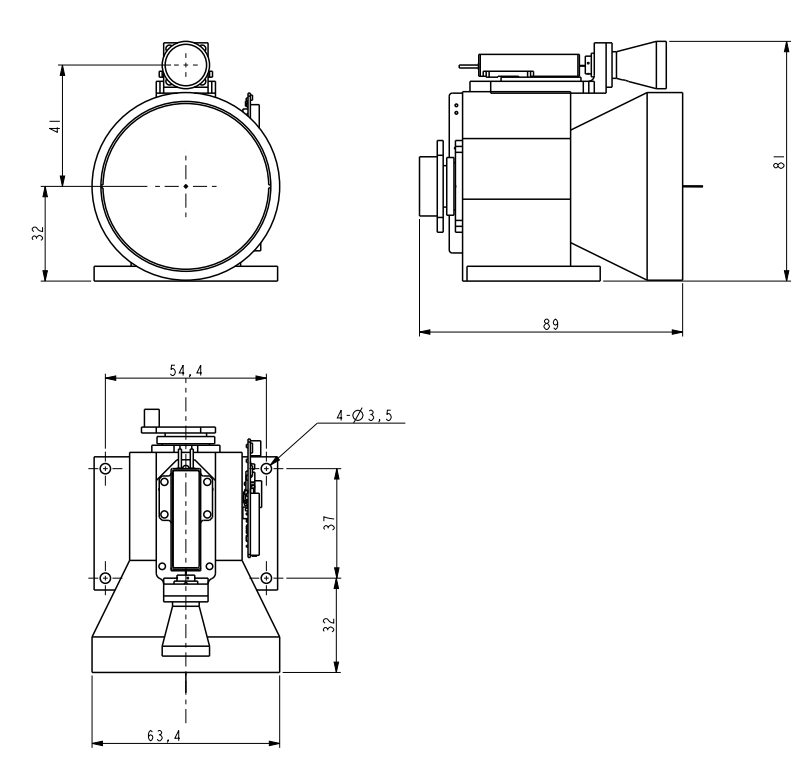 ऑप्टिकल अक्ष स्थापना संदर्भ के समानांतर है |